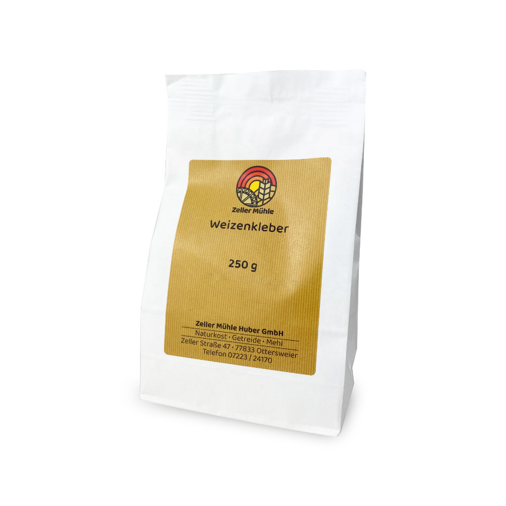 Weizenkleber (auch Weizengluten oder Weizeneiweiß) wird durch Auswaschen der Stärke aus Weizen gewonnen. Eingesetzt wird das Pulver bei schweren Teigen (hoher Körneranteil, hoher Roggenanteil, viel Vollkorn) zur Stabilisierung oder bei Wurzelbroten für eine sehr grobe Porung eingesetzt.