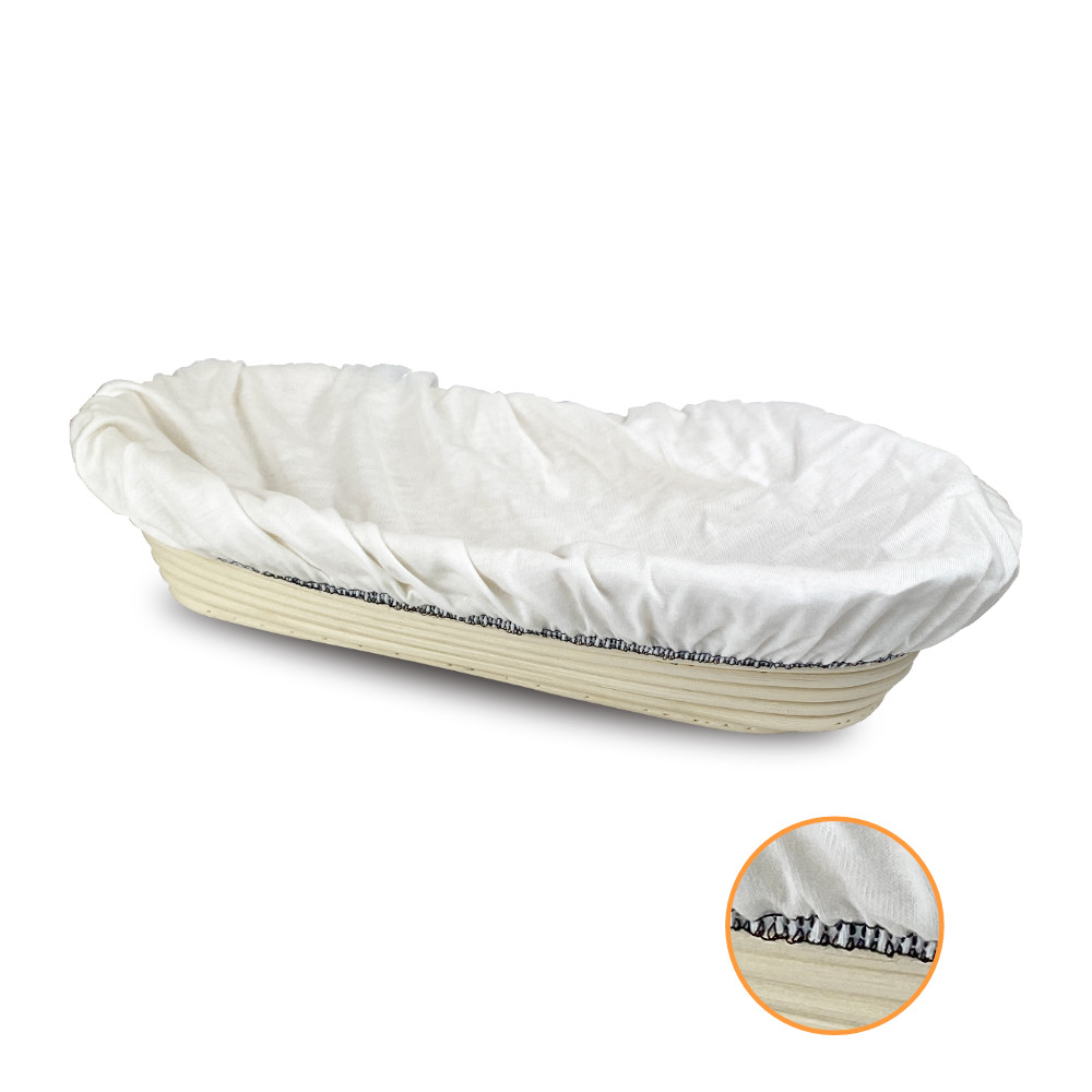 Cleanbake Gärkörbcheneinlagen, aus Baumwoll-Jersey mit 180g/m² für langes Gärkörbchen 750 Gramm; 320x130x75 mm, schwarz gekettelt